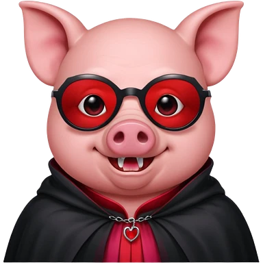 Vampire animal, pig in red collar cloak, red eye, fangs, sunclasses emoji