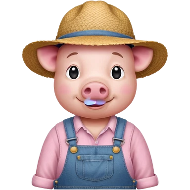 Farmer Pig – pink pig wearing straw hat and smiling emoji