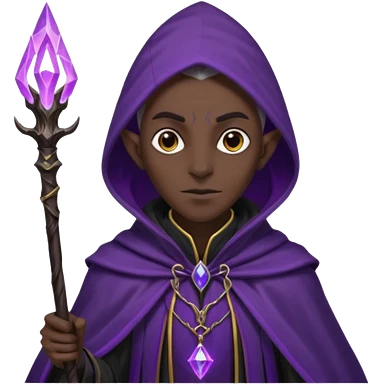 "description": "a dark elf wizard in a black cloak channeling purple energy around their staff"