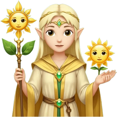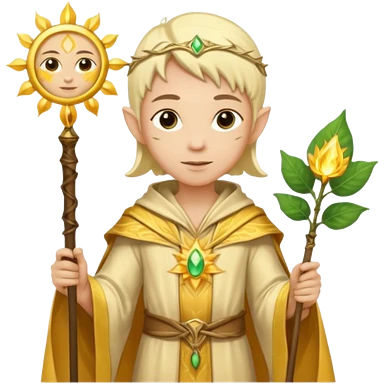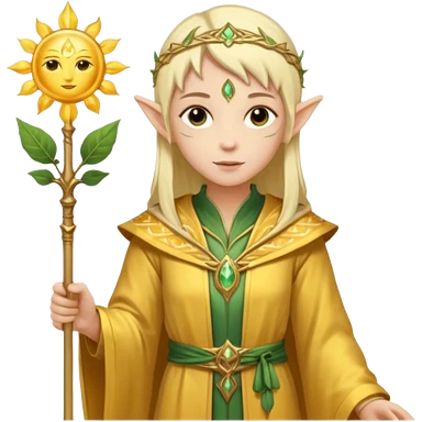 "description": "a light elf healer wearing a golden robe and holding a staff"