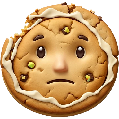 { "type": "object", "look": "chocolate chip cookie man, round chips, baked surface, front view", "description": "a cookie man made of chocolate chip dough, with visible chips and soft edges" } emoji