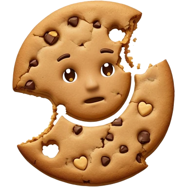 { "type": "object", "look": "broken cookie man, missing bite, crumbs on edge, front view", "description": "a cookie man partially eaten, showing a bite mark and rough crumbs" } emoji