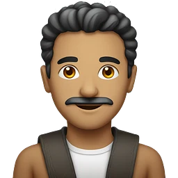 typical yellow emoji face with a beard, mixed happy and sad expression emoji