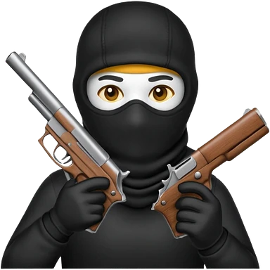 Un emoji con una balaclava negra con una pistola peine largo swicht emoji