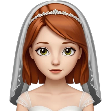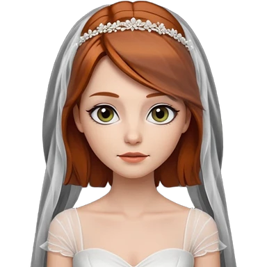 милая девушка невеста с фатой, с рыжими прямыми волосами по плечи, с черными макияжем глаз, тонкими бровями, в стиле Apple avatar emoji