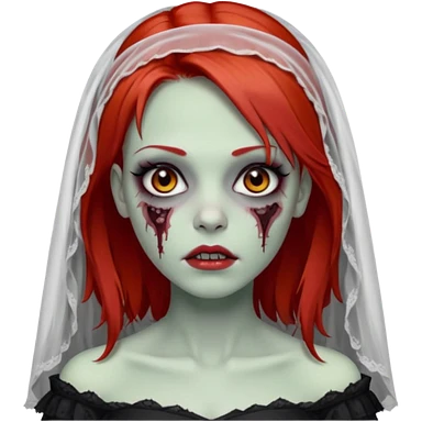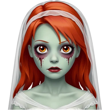 девушка зомби невеста с фатой, с рыжими прямыми волосами по плечи, с черными макияжем глаз, тонкими бровями, в стиле Apple avatar emoji