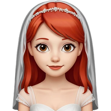 милая девушка невеста, с фатой, рыжими прямыми волосами по плечи, с черными макияжем глаз, тонкими бровями, с улыбкой, в стиле Apple avatar emoji