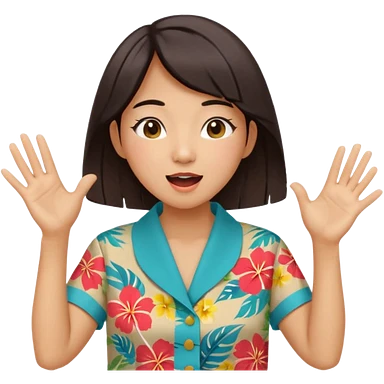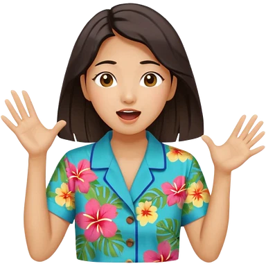 들뜬 표정의 20대 한국 여자, 여름 옷차림, 두 손으로 입을 감싸 “괌 가자~” 외치는 포즈. 민트색 배경, 밝고 유쾌한 광고 포스터 느낌, 옷이 더 하와이안 셔츠였음 좋겠어 입 손을 더 가까이 대줘 확성기 소리치는거처럼 emoji