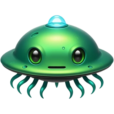 UFO flying saucer, green lights, cartoon sci-fi emoji, no background emoji