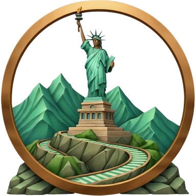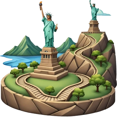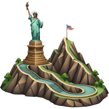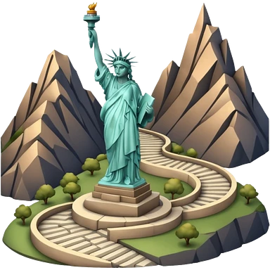 Montaña con con la estatua de la libertad con subida en curva zigzag emoji