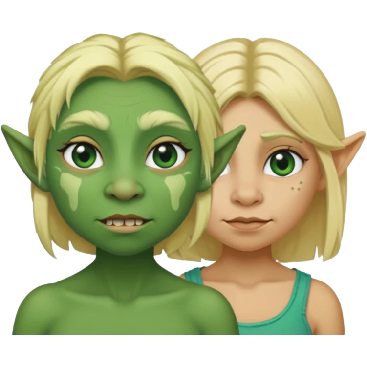 ugly female troll with blonde hair next to short blonde human emoji | AI Emoji Generator