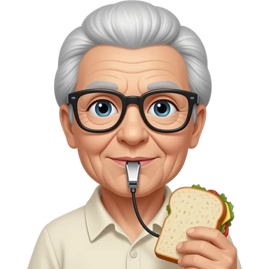 ugly old lady with whistle and sandwich in a dress emoji | AI Emoji Generator