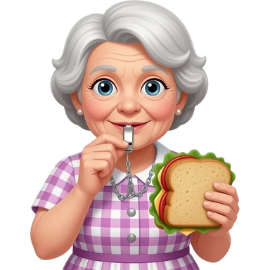 old lady with whistle and sandwich emoji