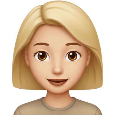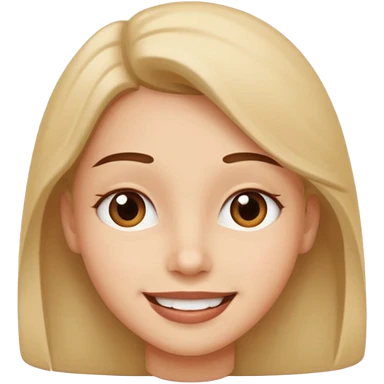 Long straight brown hair bright-emerald-green eyes medium-full dusty-pink lips oval face slightly arched eyebrows woman, slightly smiling close-lipped pale white skin emoji