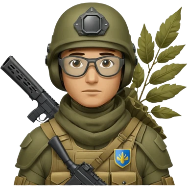 Ukrainian intelligance agency warrior man in platecarrier with nato riffle in helmet and glasses emoji