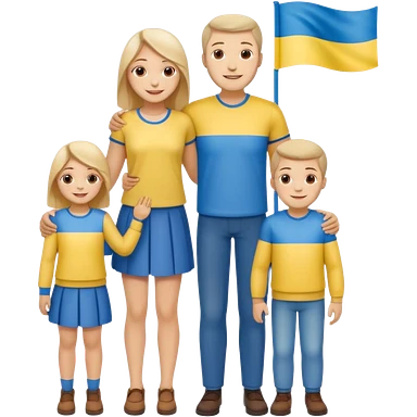 Ukrainian family with ukrainian flag on their clothes emoji