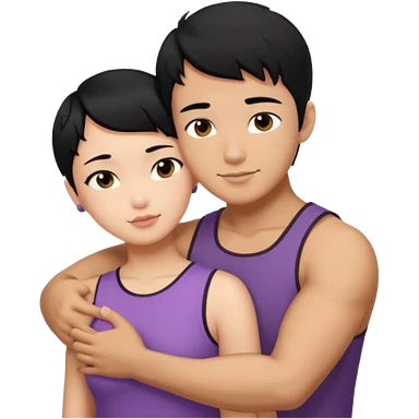 buff Asian Man black hair hugging girl with black pixie cut emoji
