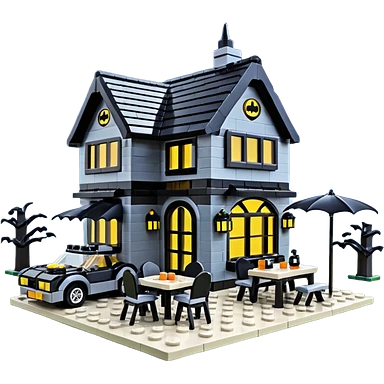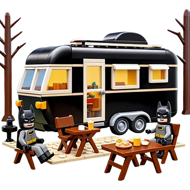 Ultra hotrod cute Lego Haunted Batman dream house Caravan with picnic table and folding chairs at Christmas emoji | AI Emoji Generator