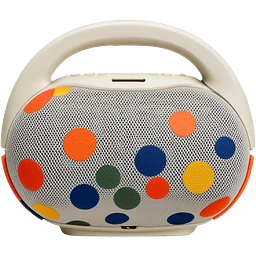 Ultra minimal JBL Clip 4, extremely simplified circular shape with tiny carabiner, just a few green camo spots, small JBL logo, iOS emoji style emoji | AI Emoji Generator