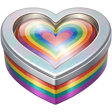 3D isolated, rendering, 8k resolution, 1x1, 8000x8000 pixels, transparent background, no emoji faces, Heart shaped box wrapped in silver metallic paper with 3D appearance rainbow prismatic effect glitter cute cute emoji