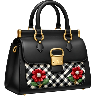 realistic black color dolce and Gabbana bag with a cottagecore style plaid embellishment emoji