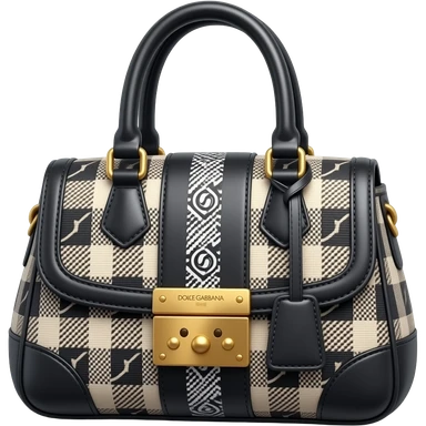 realistic black color dolce and Gabbana bag with a cottagecore style plaid embellishment emoji