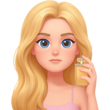 haz una memoji rubia d pelo largo aplicandose perfume emoji