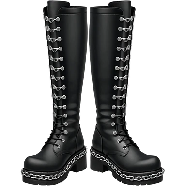 Ultra Realistic, Mens Demonia knee high black and metallic chain boots emoji