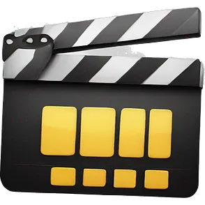 Ultra simplified movie clapper with black and white colors, two simple rectangles with a diagonal line emoji