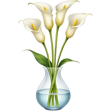 Ultra realistic beautiful Calla Lily Zantedeschia Bouquet with a yellow satin ribbon in a translucent vase with water emoji