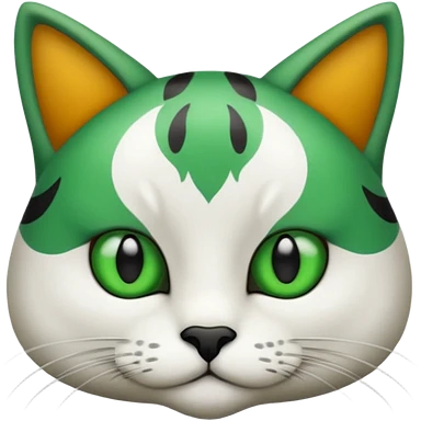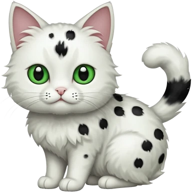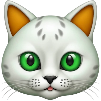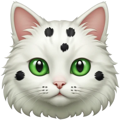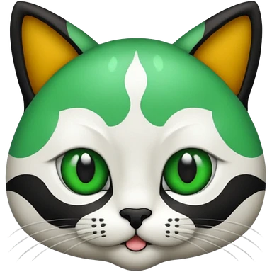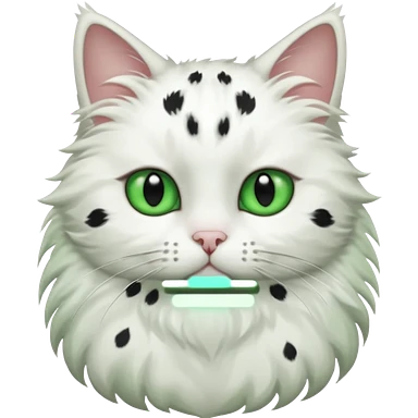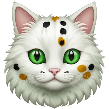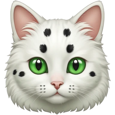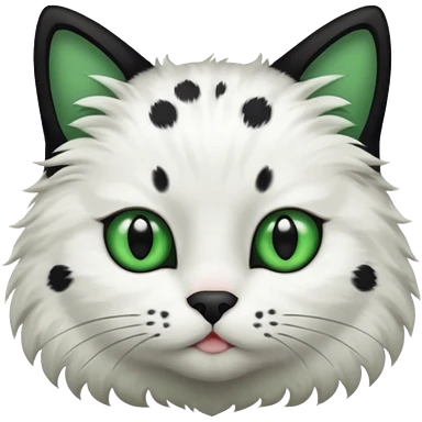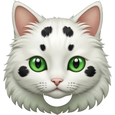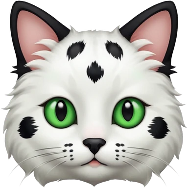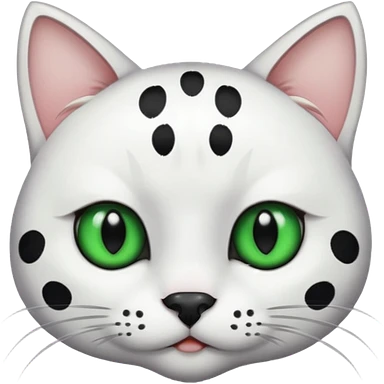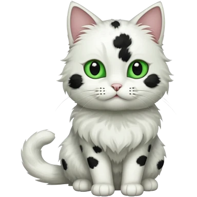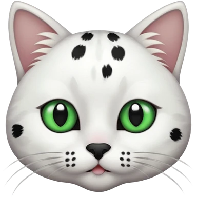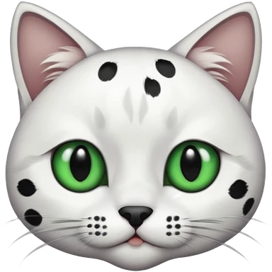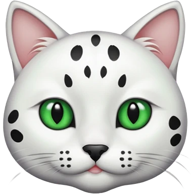 um gato branco com manchas pretas olho preto e verde emoji