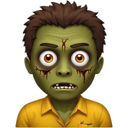 Um garoto zombie de cabelo castanho escuro, quase preto, com um cabelo médio, com olhos castanhos esverdeados, de camisa branca, com óculos redondo emoji | AI Emoji Generator