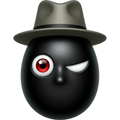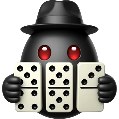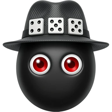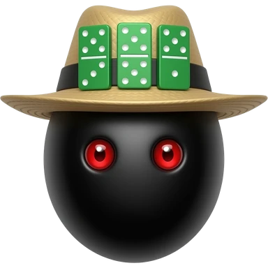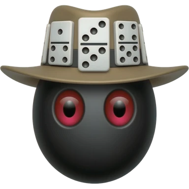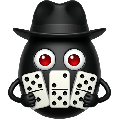 um ovo preto com 2 olhos vermelhos com chapeu preto com 3 dominos emoji