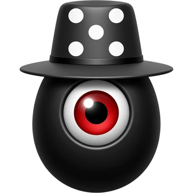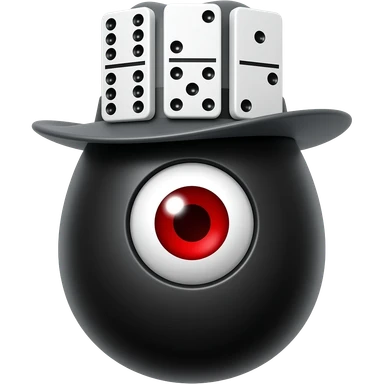 um ovo preto com olho vermelhocom chapeu com 3 dominos emoji