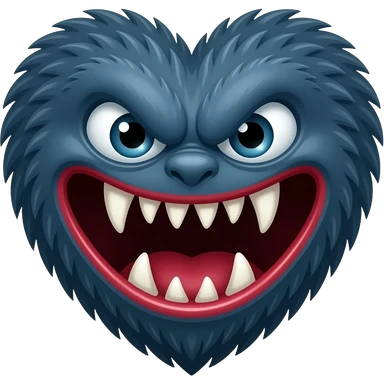 Crie o emoji de um monstro com a cara no formato de coração azul escuro com ema boca grosa e vermelha cheia de dentes aviados ela tem pelo e olhos grandes com um olhar ameaçador com cara de “ eu vou te matar “ emoji