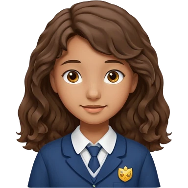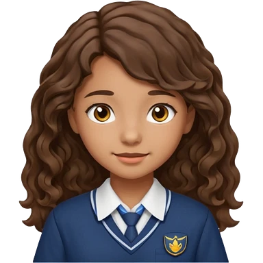 uma menina adolescente, branca um pouco bronzeada, cabelo ondulado e castanho médio, olhos castanhos emoji