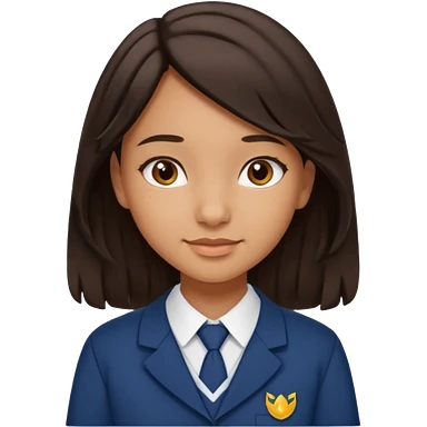 Quiero a una persona morena no tan morena , que sea una adolescente , que lleve uniforme escolar , con un pelo ondulado pero que sea negro castaño,pero no regido , pero que tenga una sonrisa suave, pero que este con un fondo blanco. Pero no tan ondulado tirando para liso y un poco largo emoji