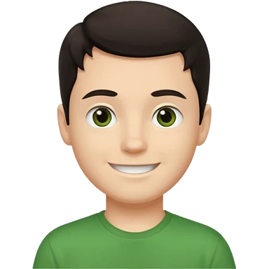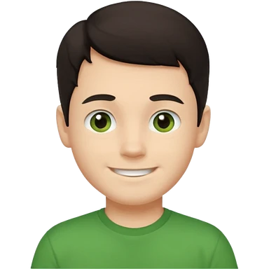 Um rapaz branco de olhos e cabelos escuros e camiseta verde emoji | AI Emoji Generator