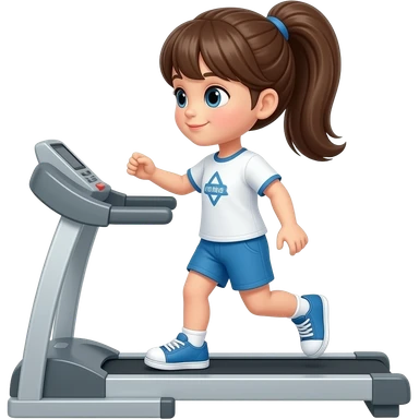 Bonequinha com rabo de cavalo na esteira emoji