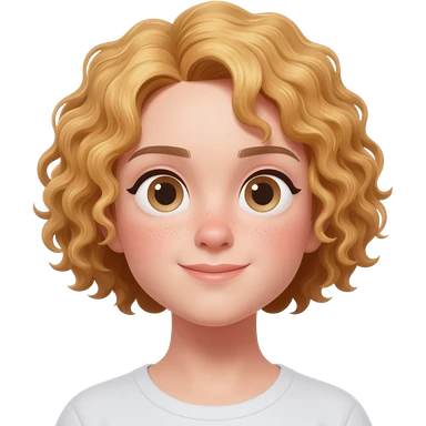Uma garota de cabelo ondulado loiro escuro,mas com franja lisa e olhos pretos, e a cor de pele branca,e o cabelo LONGO emoji | AI Emoji Generator