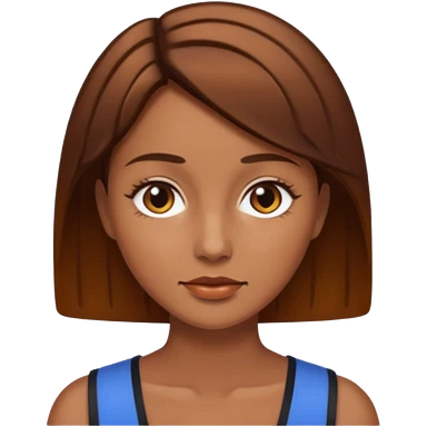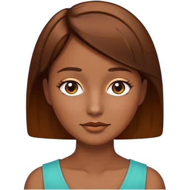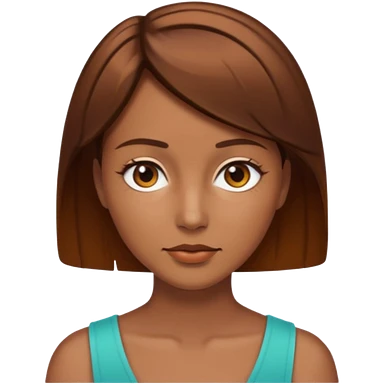 uma menina adolescente, branca um pouco bronzeada, cabelo ondulado e castanho médio, olhos castanhos emoji