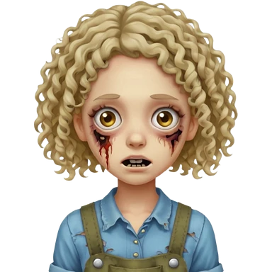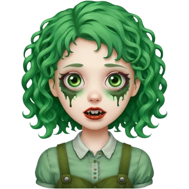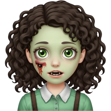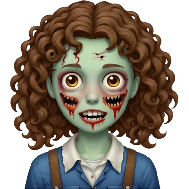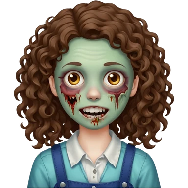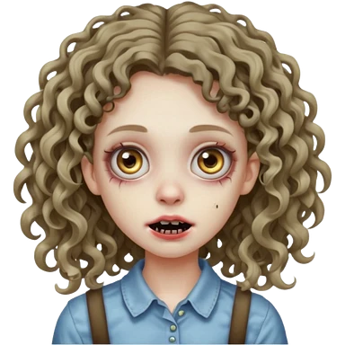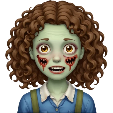 uma garota zumbi com o cabelo cacheado meio ondulado que usa aparelho emoji | AI Emoji Generator