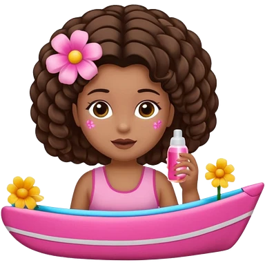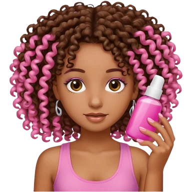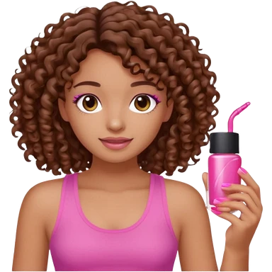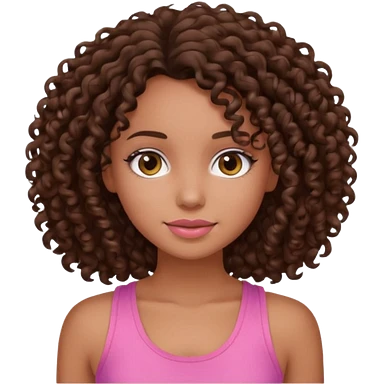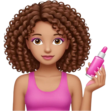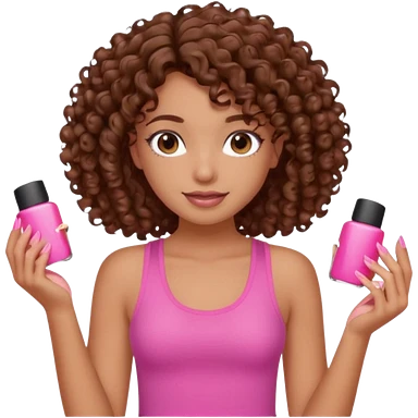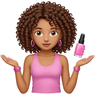 Uma menina com o cabelo cacheado é morena, e com uma regata rosa com unha em gel emoji | AI Emoji Generator