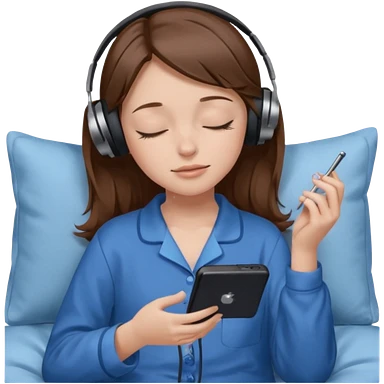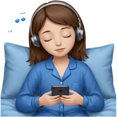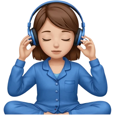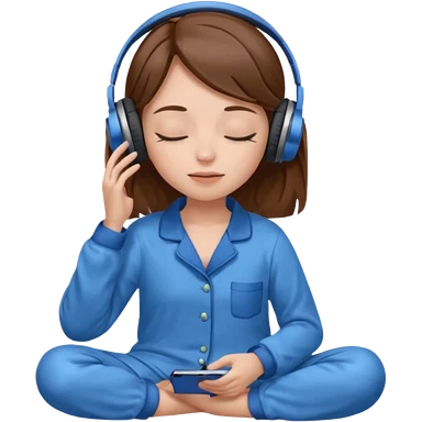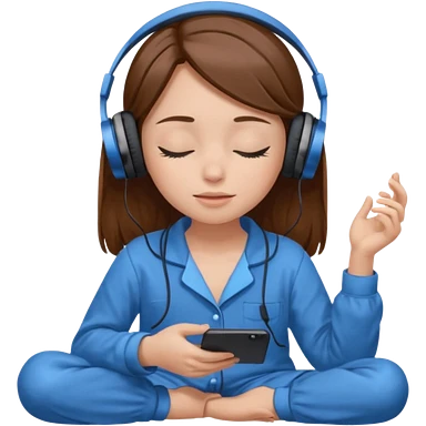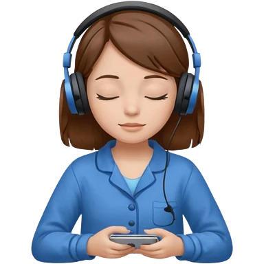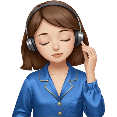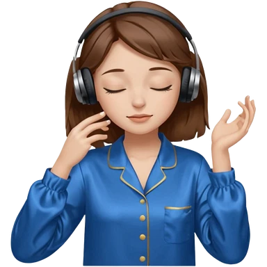 chica con pelo castaño ojos cerrados escuchando musica en pijama azul emoji