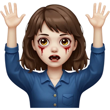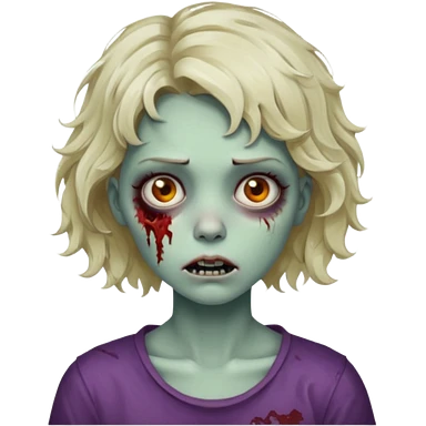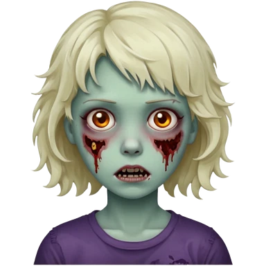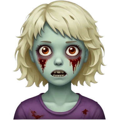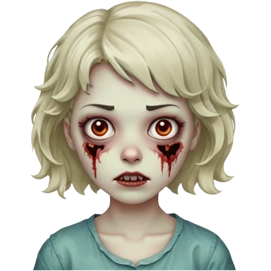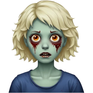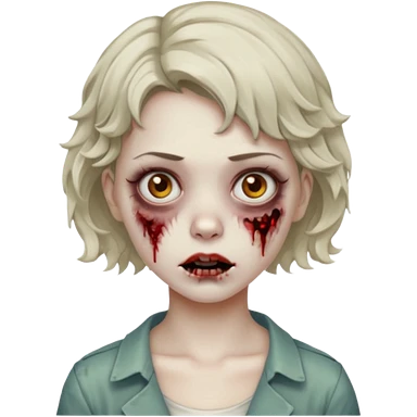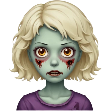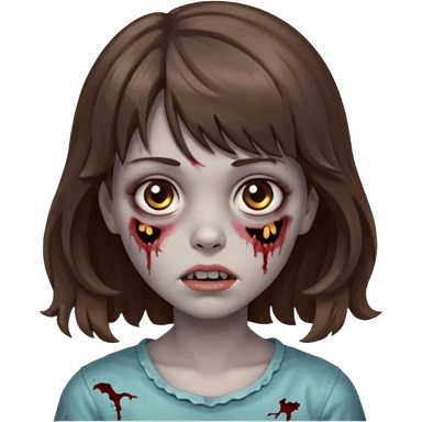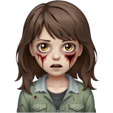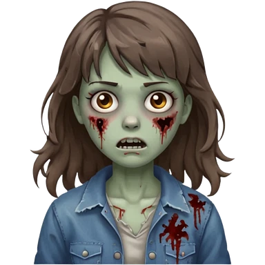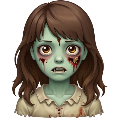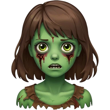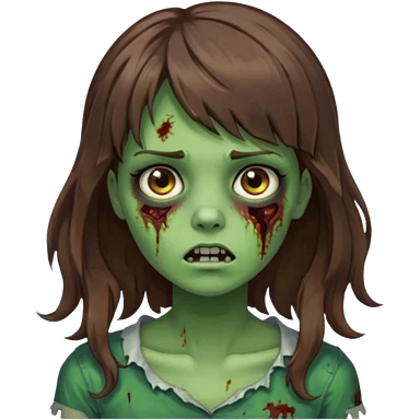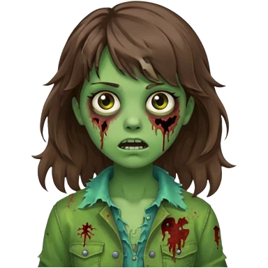 Uma menina zombie com um cabelo ondulado médio, com a franja pro lado esquerdo, o cabelo com cor castanho com a cor de pele verde emoji | AI Emoji Generator