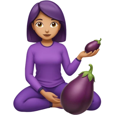 Mulher ajoelhada,com uma berinjela na mão,só uma berinjela emoji