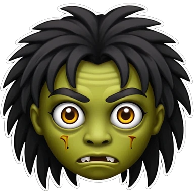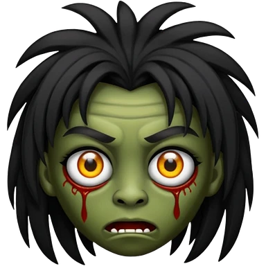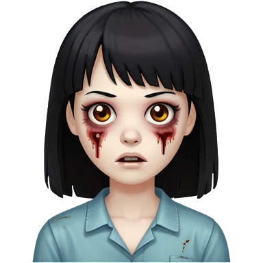 Uma zumbi com os cabelos pretos, mediano, liso e com franja, olhos castanhos emoji | AI Emoji Generator