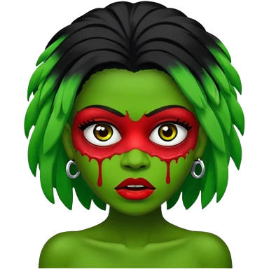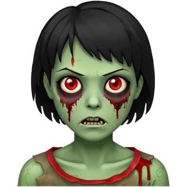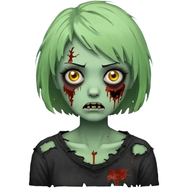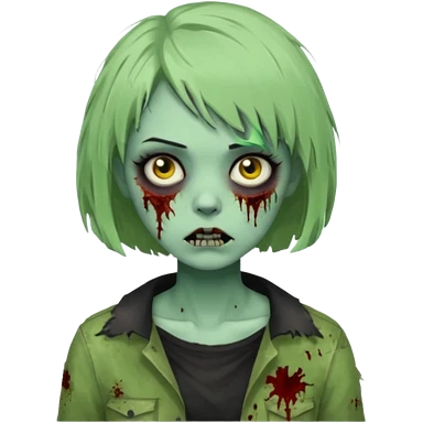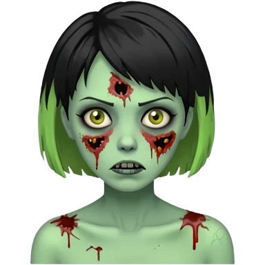 Uma zumbi de pele verde cabelo chanel todo preto bagunçado sem cabelo verde emoji | AI Emoji Generator
