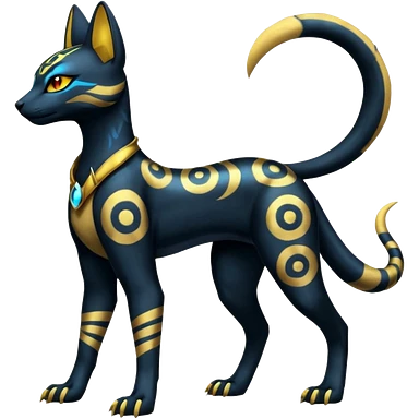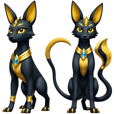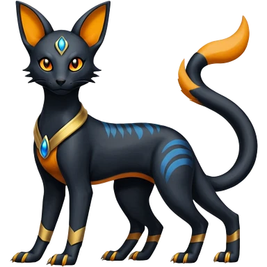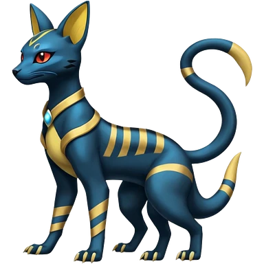 Shiny 4-legged Umbreon-Bastet-Anubis-Salandit-Zeraora-fusion, full body emoji