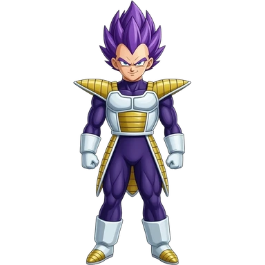 Un vegeta ultra ego con el pelo morado con el cuerpo entero emoji